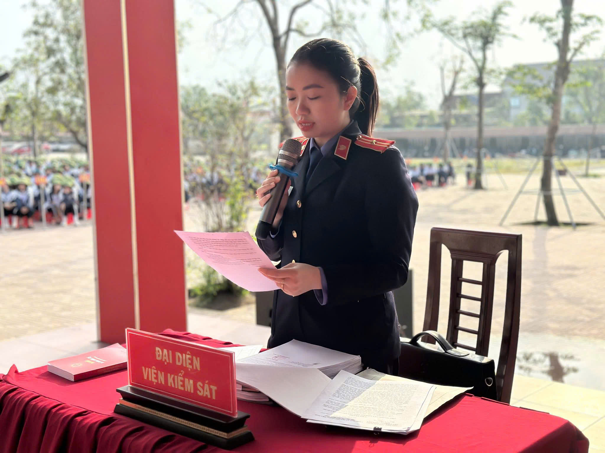 👉Thông qua cáo trạng giả định, phiên toà đã giúp các em học sinh và đoàn viên hiểu rõ hơn về quyền, nghĩa vụ của công dân trong thực hiện nghĩa vụ quân sự, nhận diện các hành vi vi phạm, cũng như các quy định xử lý theo pháp luật. Hoạt động được tổ chức sinh động, trực quan, tạo sức lan tỏa mạnh mẽ, góp phần nâng cao ý thức chấp hành pháp luật cho thanh thiếu niên.