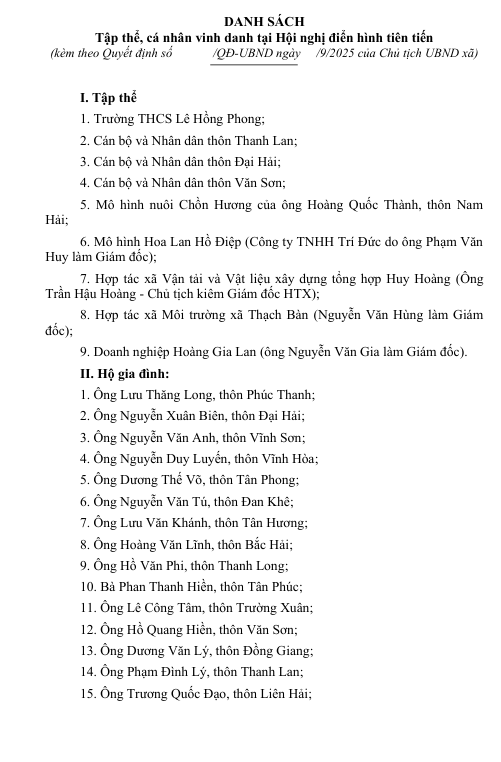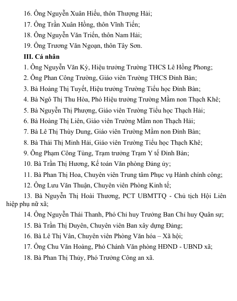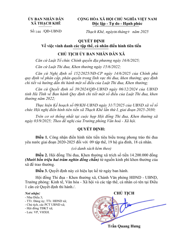 Quyết định vinh danh các tập thể, cá nhân điển hình tiên tiến năm 2025UBND xã Thạch Khê06/09/2025A -A+UBND xã Thạch Khê06/09/2025A -A+